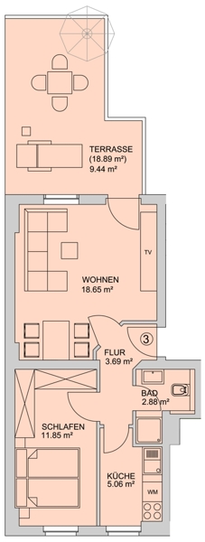 | ImmoNr | 904 | Wohnfläche | 51 m² |