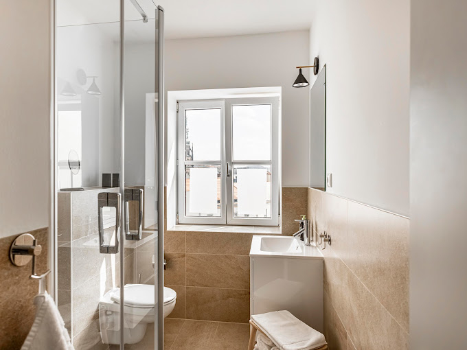 - exklusives Bad mit moderner Dusche, Designer-Waschtisch