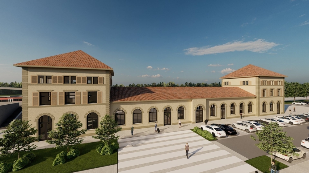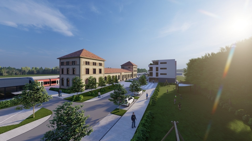 Der Bahnhof liegt zentral in der verkehrsberuhigten innerstädtischen Entwicklungsfläche „Quartier Bahnhofstrasse“, in welcher sich mehrere Neubauprojekte mit insgesamt ca. 12.500 m² Wohn- und Nutzfläche, darunter ein Hotel, ein Ärzte- Wohn- und Geschäftshaus, ein Fitnessstudio sowie Laden-, Gastronomie-, Wohn- und Büroflächen, ansiedeln. Mit seiner historischen Architektur ist der denkmalgeschützte Bahnhof der zentrale „Eye-Catcher“ im Quartier. Außerdem ist er ein wichtiger Knotenpunkt für die Region.