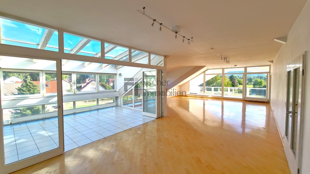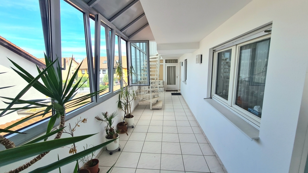 5-Zimmer-Wohnung (Wohnung 4) mit Windfang, Flur, Küche, Dusch/WC, Bad/WC, 5 Zimmer, Wintergarten und Loggia. Der Spitzboden ist nicht ausgebaut.