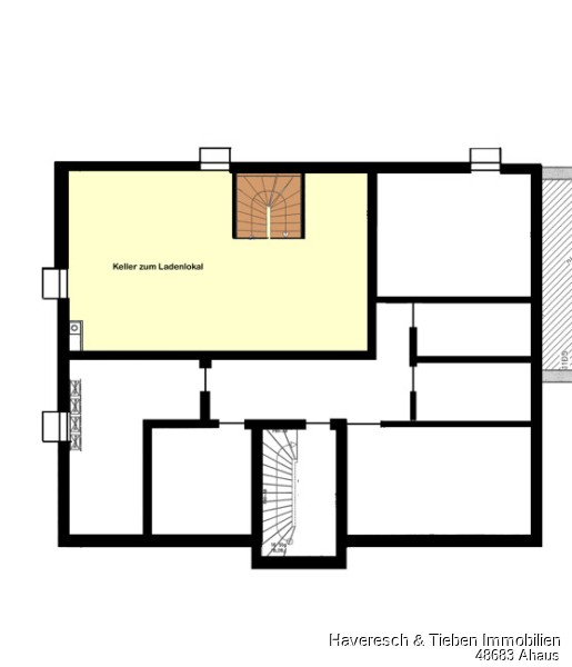 Die aktuell im Erdgeschoss genutzte Hauptfläche, mit einer großzügigen Größe von etwa 160 m², dient derzeit als Einzelhandelsfläche und bietet vielseitige Möglichkeiten zur Nutzung. Ergänzt wird das Angebot durch eine Lagerfläche im Kellergeschoss mit ca. 56 m², die ideal für die Unterbringung von Waren oder Materialien geeignet ist.