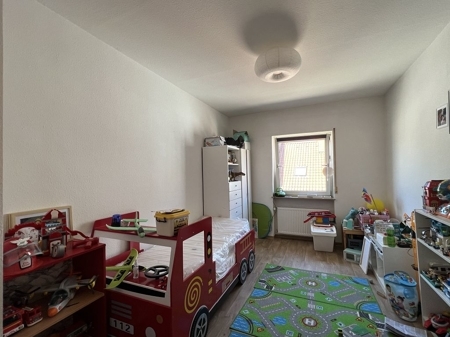 DG-Aufteilung: Wohnung mit Flur, Kinderzimmer, Wohnzimmer als Durchgang in Arbeitszimmer, Bad mit Dusche, Schlafzimmer, Küche,