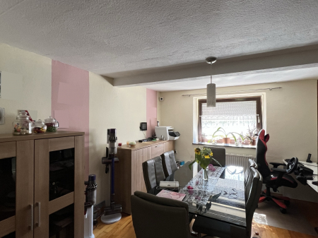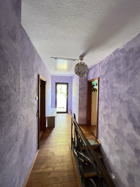 Beschreibung Landidylle im höchstgelegenen Dorf der Pfalz. Die Immobilie wurde ursprünglich im Jahr 1890 auf einem 419 m² großen Grundstück erbaut und in den Jahren 1956-1959 umgebaut und aufgestockt. Der Teil-Ausbau der Scheune zur Wohnung erfolgte im Jahr 1966, die letzte Modernisierung fand hier in den Jahren 2002 und 2003 statt, incl. Gas, Wasser und Elektro. Das Haus verfügt über ca. 131 m² Wohnfläche, aufgeteilt in EG und OG. Im Erdgeschoss befindet sich das Wohn- Esszimmer, Küche, Bad mit Wanne und Dusche und Hauswirtschaftsraum. Über den Flur gelangt man in den Garten. Das Obergeschoss ist aufgeteilt in 4 Schlafzimmer und einen Flur, von dem man auf den Balkon gelangt. Das Dachgeschoss wird derzeit als Speicher genutzt. Zwei Gewölbekellerräume liegen unter dem Haus. Die Immobilie wird über eine Gaszentralheizung mit Flüssiggas versorgt, eine Alternative bietet der Kachelofen für Festbrennstoffe, der die Warmluft über Luftschächte in die Schlafräume leitet. Weiterer Wohnraum ist im Jahr 1966 in der ehemaligen Scheune entstanden, hier stehen ca. 37 m² Wohnfläche bereit, die aktuell als Ferienwohnung durch die Eigentümer genutzt werden. Ein Wohnraum mit Küche, ein Schlafzimmer und ein Bad mit Dusche könnten hier von Feriengästen genutzt werden. Für diese Wohnung wurde 2002 ein Gas-Brennwertgerät installiert. Mit einigen Renovierungen können Sie sich hier Ihre Wunschimmobilie ganz nach Ihren Vorstellungen gestalten, eventuell auch durch einen weiteren Ausbau der Scheune. Die Lage mit der Fernsicht und der Garten sind auf jeden Fall Garanten für idyllisches Wohnen auf dem Land. Zur Zeit ist das Haus vermietet, die Wohnung wird nur zeitweise genutzt. Gerne stellen wir Ihnen die Immobilie bei einem Besichtigungstermin vor. Unser Büro erreichen Sie außerdem auch für Rückfragen.