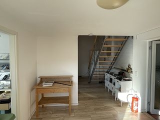 Von Flur aus Treppenaufgang in Dachgeschoss mit Schlafzimmer und offenem Bad, ca 139,32 m²