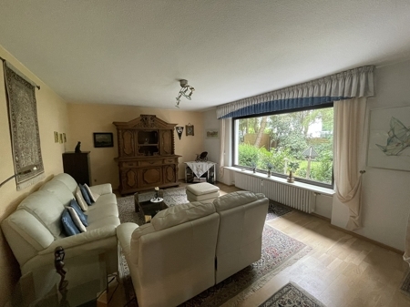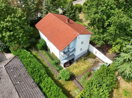 Beschreibung Die Immobilie wurde im Jahr 1963 auf einem 880 m² großen Erbpachtgrundstück in ruhiger Lage erbaut. Insgesamt stehen ca. 171 m² Wohnfläche zur Verfügung. Die Wohnung im Erdgeschoss steht aktuell leer und umfasst ein Wohn-/Esszimmer mit Ausgang zur Terrasse, ein Schlafzimmer, ein Kinderzimmer, Küche, Badezimmer und Abstellraum. Die Wohnfläche beträgt ca. 85 m². Die Wohnung im Obergeschoss ist vermietet, weitere ca. 86 m² Wohnfläche verteilen sich hier auf Wohn-/Esszimmer mit Balkon, Schlafzimmer mit weiterem Balkon, Kinderzimmer, Badezimmer und Abstellraum. Das Zweifamilienhaus ist voll unterkellert, ein Heizraum, ein Hauswirtschaftsraum und ein Kellerraum zur allgemeinen Nutzung befinden sich auf dieser Etage. Weiterhin ist hier eine kleine Einliegerwohnung mit 2 Räumen, Küche, Duschbad und Zugang zum Garten untergebracht. Aufgrund der Deckenhöhe von 2,14 Meter ist diese Einheit, mit einer Fläche von ca. 43 m², allerdings nicht in die Gesamtwohnfläche eingerechnet. Versorgt wird das Anwesen über eine Zentralheizung, das Gas-Brennwertgerät stammt aus dem Jahr 2015. Die Warmwasser-Versorgung erfolgt im EG über die Heizung, im OG über Elektro-Durchlauferhitzer. Diverse Renovierungsmaßnahmen wurden bereits vorgenommen, die isolierverglasten PVC-Fenster stammen aus dem Jahr 2019, das Parkett im EG wurde im Jahr 2011 verlegt, das Dach wurde im Jahr 2010 neu eingedeckt. Die beiden Garagen wurden massiv erbaut. Das Grundstück liegt traumhaft und kann für Hobbygärtner und Ruhesuchende gleichermaßen eine Oase sein. Alles in allem ein rundum gutes Angebot, das Sie sich gerne bei einem Besichtigungstermin genauer anschauen sollten. Gerne steht Ihnen unser Büro für Rückfragen und für die Terminabsprache zur Verfügung.