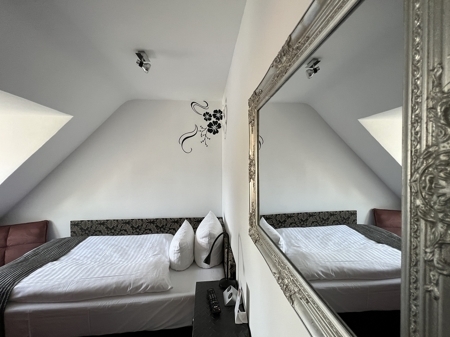 Beschreibung Investoren und Hoteliers aufgepasst! Eine solche Chance, bei der Lage, Ausstattung, Auslastung und Preis stimmen, bietet sich nur sehr selten. Die Immobilie wurde im Jahr 1958 auf einem 355 m² großen Eigentumsgrundstück erbaut und im Jahr 1968 zu einem Hotel umgebaut. In den Jahren 2021 und 2022 erfolgten umfangreiche Renovierungsmaßnahmen, es wurde sowohl in die Technik mit Klimaanlagen, Photovoltaik-Anlage usw. investiert, als auch energetische Maßnahmen vorgenommen. Leitungen wurden bereits getauscht und die Bäder erneuert bzw. generalüberholt. Die Fernwärme Heizung stammt aus dem Jahr 2010. Eine detaillierte Aufstellung ist unter dem Punkt Ausstattung zu finden. Der neue Eigentümer übernimmt also ein 3-Sterne-Superior Hotel in Top-Zustand mit laufendem Geschäftsbetrieb in sehr zentraler, und dennoch ruhiger Lage von Kaiserslautern. Sei es die Highspeed WLAN Versorgung, das weltweite Buchungssystem oder der digitale Check-in, all dies ist bereits vorhanden, wird sehr gut von den Gästen angenommen und erleichtert enorm den Hoteliers-Alltag. Die gesamte Nutzfläche beträgt ca. 307 m², davon entfallen ca. 242 m² auf den Gästebereich, sprich Zimmer und Frühstücksraum. Die Hotelgäste erfreuen sich über 11 Zimmer, davon 2 Appartements, 3 Doppelzimmer und 4 Einzelzimmer. Zusätzlich beherbergt das Haus 2 Studentenzimmer mit Dusche und separatem WC auf dem Flur, die ebenfalls vermietet sind. Im Untergeschoss stehen Kellerräume und eine Waschküche zur Verfügung. Der Hof auf der Rückseite des Anwesens darf mitbenutzt werden. Wir könnten hier noch viele Vorzüge des Hotels aufführen, unser Vorschlag wäre allerdings ein individueller Besichtigungstermin, um sich vor Ort selbst davon zu überzeugen. Unser Büro steht Ihnen für Rückfragen und zur Vereinbarung eines Termins gerne zur Verfügung.