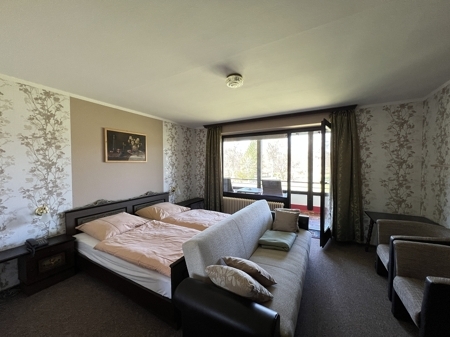 Beschreibung Sie sind ein erfahrener Gastronom und suchen eine neue Aufgabe? Dann haben wir hier eine einmalige Gelegenheit im Herzen des Naturparks Pfälzerwald. Das Hotel und das Restaurant punkten mit der Lage, der Größe sowie der Auslastung bzw. der Frequenz. Mitten auf der beliebten Ausflugs- und Bikerstrecke gelegen, darf hier nach Herzenslust eingekehrt werden. Sei es der Start und Schlusspunkt einer Wanderung, eine Pfalzrundfahrt mit dem Cabrio, Fahrrad oder Motorrad, dieses Anwesen kennt jeder. Erbaut im Jahr 1953, umgebaut zum Hotel im Jahr 1965, erweitert in 1974 und um eine Ferienwohnung im Jahr 1981 ergänzt, steht diese Immobilie auf einem 15.107 m² Grundstück. Insgesamt stehen in dem Beherbergungsbetrieb 31 vermietbare Einheiten zur Verfügung, davon sind bei 14 Zimmern Bäder integriert, für die restlichen Fremdenzimmer stehen gemeinsame Bäder bereit. Das Restaurant mit Nebenraum und Speisesaal bietet aktuell 195 Plätze für Gäste. Das Anwesen umfasst satte 1.765 m² Nutzfläche, zusätzlich im Außenbereich der große Biergarten, der hochfrequentierte Kiosk für den Außenverkauf, Stallungen für Schaf- und Ziegenhaltung, 5 separate Garagen und ein Brennholzvorrat, der geschätzt in den nächsten 20 Jahren über die Holz-Zentralheizung aus dem Jahr 2025 für mollige Wärme sorgen wird. Die Grundversorgung der Immobilie übernimmt die Ölzentralheizung, die als Brennwertgerät verbaut ist, der dazugehörige Öltank im Außenbereich umfasst 30.000 Liter. Mit insgesamt 3800 Liter Fassungsvermögen warten 4 Warmwasser-Pufferspeicher auf. Zum Kochen im Restaurant wird Flüssiggas verwendet. Die genaue Aufteilung der einzelnen Etagen können Sie dem Punkt Ausstattung entnehmen. Gerne stellen wir Ihnen das Gebäude mit dem weitläufigen Außengelände bei einem individuellen Besichtigungstermin vor. Unser Team freut sich über Ihren Anruf zur Vereinbarung eines gemeinsamen Rundgangs.