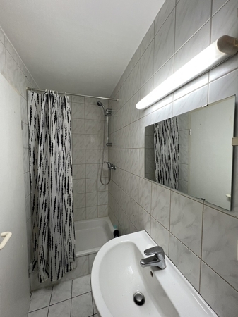 Whg 3: Flur, Bad mit Dusche, Küchenzeile, Wohnraum mit Balkon, Schlafzimmer, ca. 34,59 m²,
