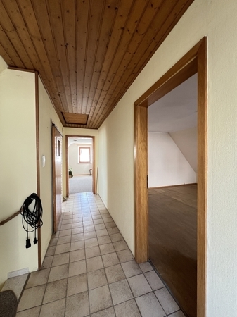 Beschreibung Sie suchen ein Haus auf dem Land, welches Sie nach Ihren Wünschen gestalten können? Dann sind Sie hier genau richtig. Die Immobilie wurde im Jahr 1925 auf einem 1.845 m² großen Grundstück erbaut und in den Jahren 1947 und 1970 erweitert. Die Wohnfläche beträgt ca. 131 m². Im Erdgeschoss liegt das Wohn- Esszimmer mit Zugang zum Balkon, ein weiteres Zimmer, die Küche und ein Bad. Der Schlafbereich im Dachgeschoss bietet 3 Zimmer, ein Bad mit Dusche und einen Balkon, den man vom Flur aus erreicht. Das Haus ist unterkellert, vor vielen Jahren wurde hier eine Schuhmacherwerkstatt betrieben, Kellerraum, Öllager und Heizungsraum vervollständigen diese Etage. Die Immobilie wird über eine Ölzentralheizung aus dem Jahr 1981 versorgt. Eine Garage und eine separate Werkstatt liegen im Außenbereich. Das weitläufige Grundstück bietet viel Platz und ein schönes Plätzchen zum Sitzen, Erholen und Gärtnern. Die Bilder geben Ihnen einen ersten Eindruck zum Gebäude, Sie sollten sich jedoch bei einer Besichtigung einen Einblick aus Ihrer Sichtweise verschaffen. Hierzu steht Ihnen unser Büro gerne zur Verfügung, vereinbaren Sie gleich einen Termin mit uns.