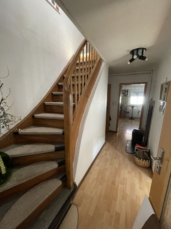 EG- Aufteilung: Windfang, Flur mit Treppenaufgang, Wohn- /Esszimmer, Küche, Diele, Bad mit Wanne, 1 kleines Zimmer, 2 Schlafzimmer