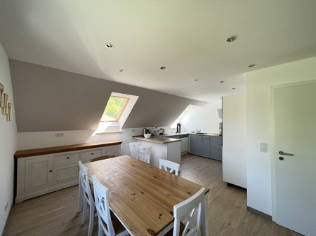 DG-Aufteilung: über Treppenhaus in Whg 3: Flur, Bad mit Wanne und Dusche, Wohnraum, Esszimmer mit offener Küche, ca. 68,24 m², über Leitertreppe zu ausgebauten Spitzboden