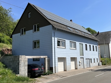 Beschreibung Das 3-Parteienhaus wurde im Jahr 1934 erbaut, 1980 erweitert und in den Jahren 2020 und 2021 grundlegend saniert. Die Grundstücksgröße ist aufgeteilt in ca. 1.506 m² Bauland und zusätzlich ca. 23.128 m² landwirtschaftliche Fläche. Die Immobilie besticht mit ihrem Platzangebot auf ca. 263 m² Wohnfläche. Die erste Wohnung im Erdgeschoss umfasst ca. 70 m² und ist aufgeteilt in Wohnzimmer, Schlafzimmer mit Ausgang zum Garten, Küche mit Zugang zum Wintergarten, der noch fertiggestellt werden muss, sowie einem Bad mit Dusche. Die zweite Wohnung im Erdgeschoss wurde im Maisonette-Stil erbaut, hier beträgt die Wohnfläche ca. 124 m². Wohnzimmer, Esszimmer und Küche wurden offen gestaltet, ein Gäste WC und der Ausgang zum Garten vervollständigen diese Etage. Über den Treppenaufgang gelangt man ins Dachgeschoss, in dem das Schlafzimmer, ein weiteres Zimmer, ein Durchgangszimmer, ein Bad und der Hauswirtschaftsraum untergebracht sind. Wohnung Nummer 3 liegt ebenfalls im Dachgeschoss, diese wurde aufgeteilt in einen Wohnraum, ein Esszimmer mit offener Küche, sowie Bad mit Wanne und Dusche. Eine Leitertreppe führt zum ausgebauten Spitzboden, hier befinden sich ca. 28 m², im unteren Bereich ca. 68 m². Durch die leichte Hanglage stehen im Untergeschoss 2 Garagen, Kellerräume und der Heizraum zur Verfügung. Weitere Lagerfläche steht im angebauten Geräteraum bereit. Versorgt wird das Anwesen mit einer Ölzentralheizung aus dem Jahr 2020 und zusätzlich einer Stückholzheizung, ebenfalls aus dem Jahr 2020, die teilweise als Fußbodenheizung genutzt wird. Eine PV-Anlage wurde als Mietmodell der SWK errichtet. Der Außenbereich ist ein Traum für Kinder, Tiere, Freizeit und Gärtner. Das weitläufige Gelände bietet allen Bewohnern und Besuchern einen herrlichen Platz inmitten der Natur. Lassen Sie sich begeistern von diesem tollen Angebot und bei einem Termin vor Ort. Unser Büro steht Ihnen gerne zur Verfügung.
