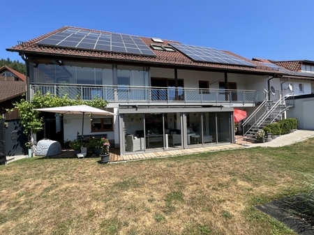 Beschreibung Wohntraum und Platzwunder in Steinalben zu verkaufen. Das gepflegte Einfamilienhaus mit Einliegerwohnung wurde im Jahr 1998 auf einem 648 m² großen Grundstück massiv erbaut. Die Wohnfläche erstreckt sich insgesamt über ca. 371 m². In der Hauptwohnung bieten ca. 226 m² Wohnfläche auch großen Familien ausreichend Platz. Im Erdgeschoss bildet das große Wohn- Esszimmer das Herzstück, welches sich zur Küche hin öffnet. Ein schöner beheizter Wintergarten, ein Duschbad, Vorratsraum, Diele und Balkon vervollständigen diese Etage. Der Schlafbereich im Dachgeschoss beherbergt 2 Kinderzimmer, Elternschlafzimmer, Ankleidezimmer, Bad mit Wanne und Dusche und einen Abstellraum. Einer sofortigen Nutzung steht nichts im Wege, die Hauptwohnung steht bereits leer. Die Einliegerwohnung mit separatem Eingang ist aktuell bewohnt und erstreckt sich über ca. 145 m² Wohnfläche. Ein großes Wohn- Esszimmer mit offener Küche, Schlafzimmer, Dusche, separates WC, Gäste-WC, beheizbarer Wintergarten, Abstellraum und Heizraum vervollständigen das Untergeschoss. Technisch ist das Haus top ausgestattet, die Pelletheizung stammt aus dem Jahr 2006, im UG und EG als Fußbodenheizung genutzt. Das Dachgeschoss erlangt seine Wärme durch Heizkörper. Die PV-Anlage mit Volleinspeisung und eine Solaranlage sorgen für "grüne Energie". Der Garten ist eine Oase der Ruhe, hier finden Sie Entspannung und Erholung vom Alltag, sei er auch noch so stressig gewesen. Für die Fahrzeuge der Bewohner stehen außerdem eine Doppel-Garage und eine Einzelgarage zur Verfügung. Ein Top-Angebot, wie wir finden. Gerne laden wir Sie zu einem Besichtigungstermin ein, nehmen Sie hierzu einfach mit unserem Büro Kontakt auf.