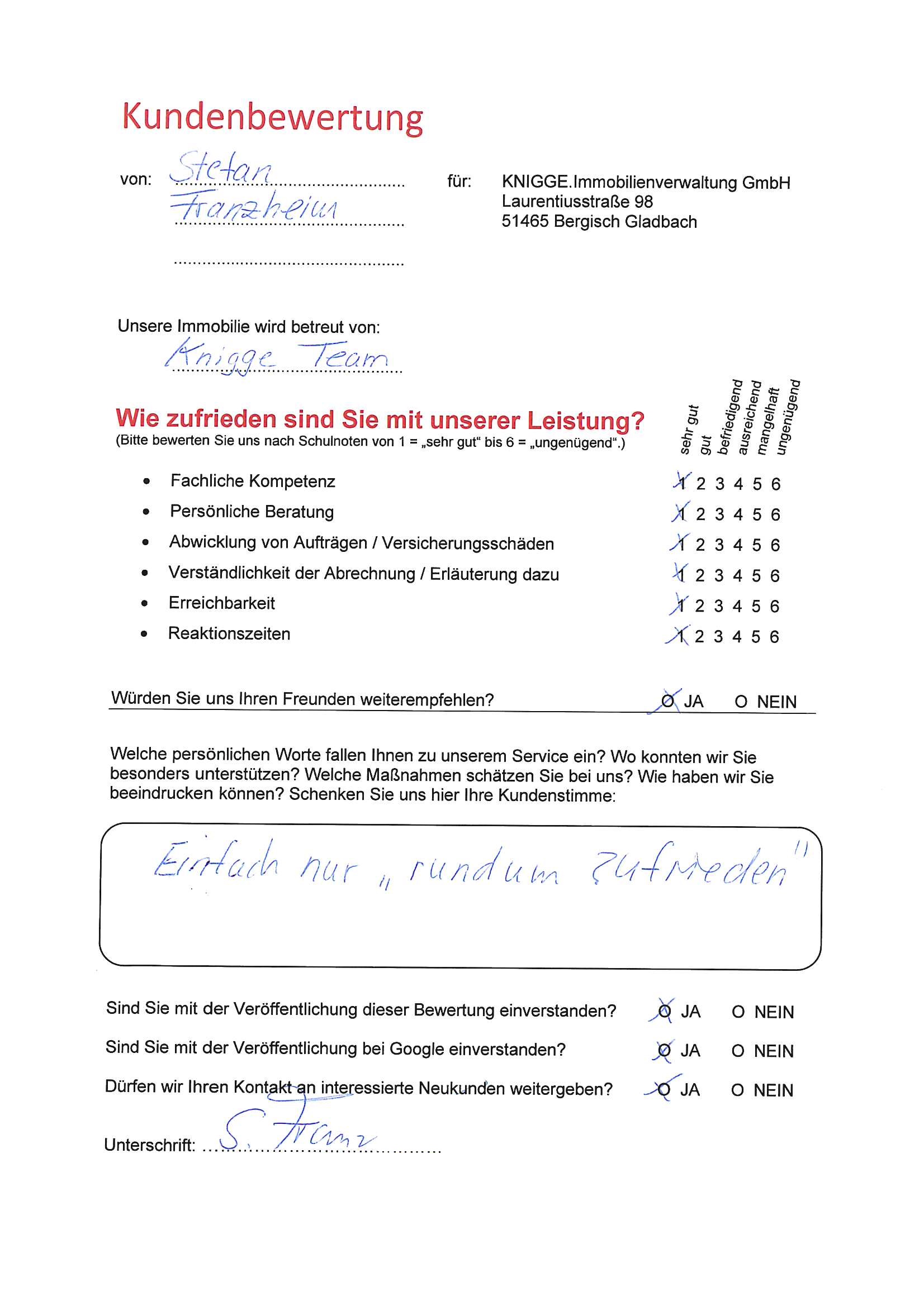 Unsere Kunden sind unsere beste Referenz. 100% der von uns befragten Beiräte und Hauseigentümer würden uns ihren Freunden weiterempfehlen.