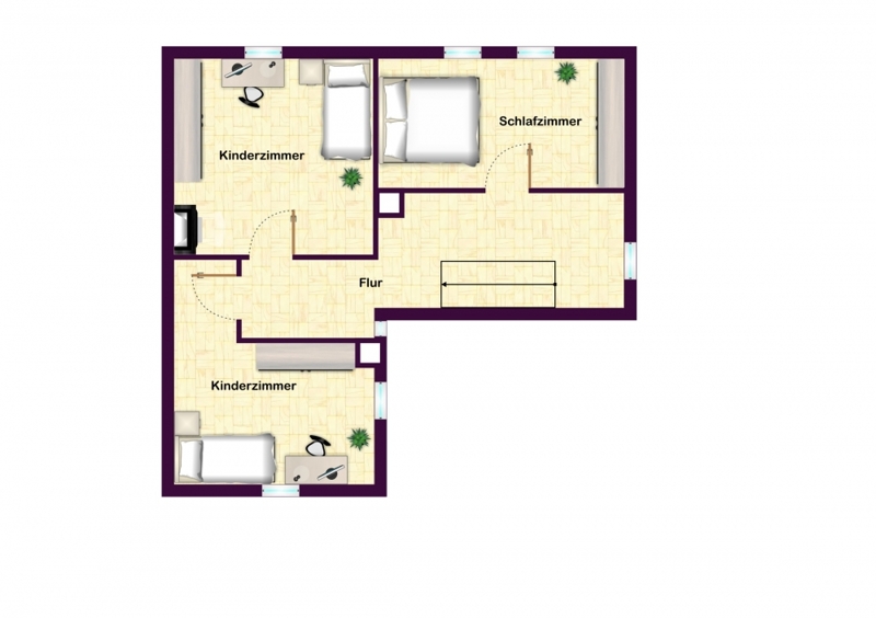 Vom Eingangsflur aus gelangen Sie über eine Holztreppe hinauf in das Obergeschoss. Hier erwarten Sie ein Schlafzimmer und zwei weitere Zimmer, die als Kinderzimmer, Arbeitszimmer oder auch als Gästezimmer genutzt werden können.