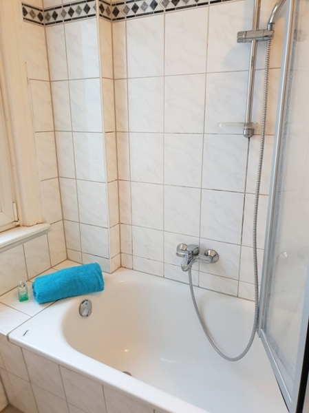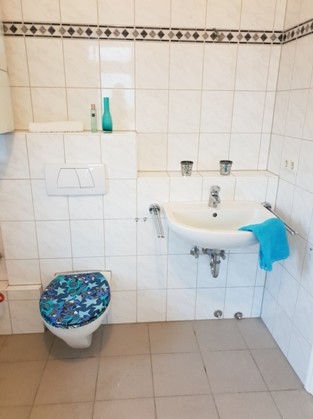 - Tageslichtbad mit Badewanne, Waschbecken und WC