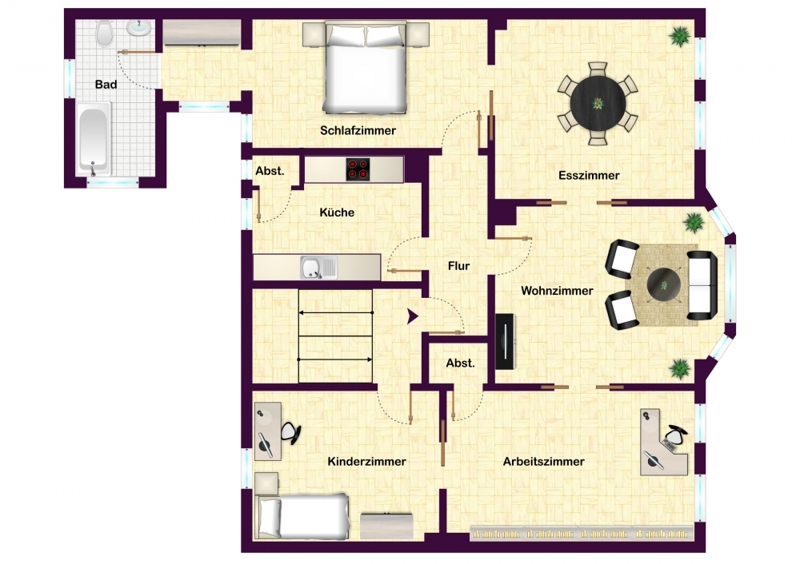 Sicherlich das Highlight dieser schönen Altbauwohnung ist das Wohnzimmer mit seiner einladenden Fensterfront. Jeweils durch stilvolle Schiebetüren getrennt, befinden sich das Esszimmer sowie ein Arbeitszimmer mit großer Bücherwand, die Ihnen viel Platz für Ihre Literatur bietet. Ein Kinderzimmer sowie ein gemütliches Schlafzimmer mit einem angrenzenden, hell gefliesten Tageslichtbad mit Badewanne und WC und kleiner Garderobennische mit Einbauschrank runden das Wohnangebot ab.