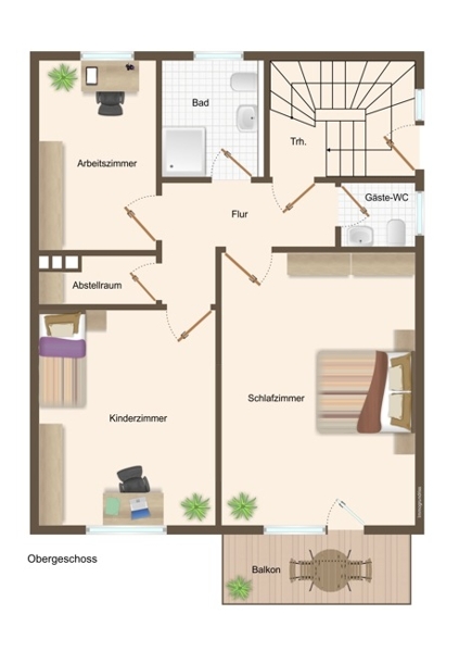 - zwei Schlafzimmer, ein Arbeitszimmer im OG