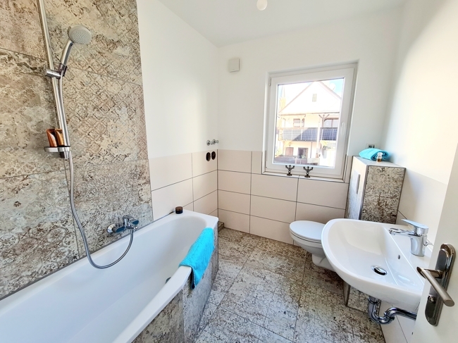 - neues Tageslichtbad mit Badewanne, Waschbecken u. Toilette im EG
