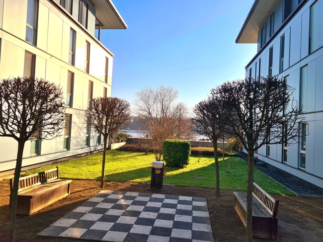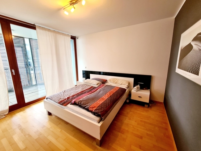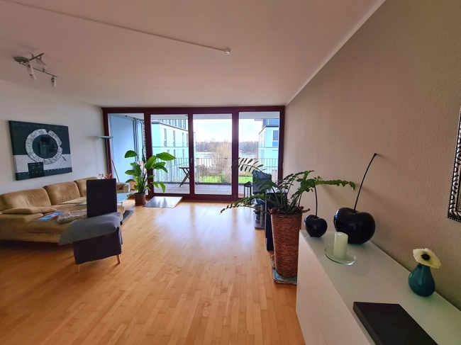 So zeichnet sich diese Immobilie durch ein absolut freundliches Wohnambiente aus. Das lichtdurchflutete Wohn-/Esszimmer und das Schlafzimmer mit Ankleidebereich, beides zur Rheinseite hin gelegen, haben einen direkten Zugang zum großen, sonnigen Süd-Balkon. Mit wunderbarem Blick auf den Rhein und in die schön gestaltete Gartenanlage, können Sie hier bei einem Glas Wein den Tag entspannt ausklingen lassen.