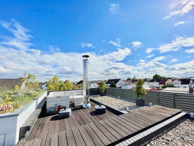 Diese schöne Maisonette-Wohnung mit ca. 130 m² Wohnfläche und dem Flair einer Roof Top Wohnung mit großer Dachterrasse befindet sich in zentraler Wohnlage in Rödermark-Urberach in einem kernsanierten Wohnhaus.