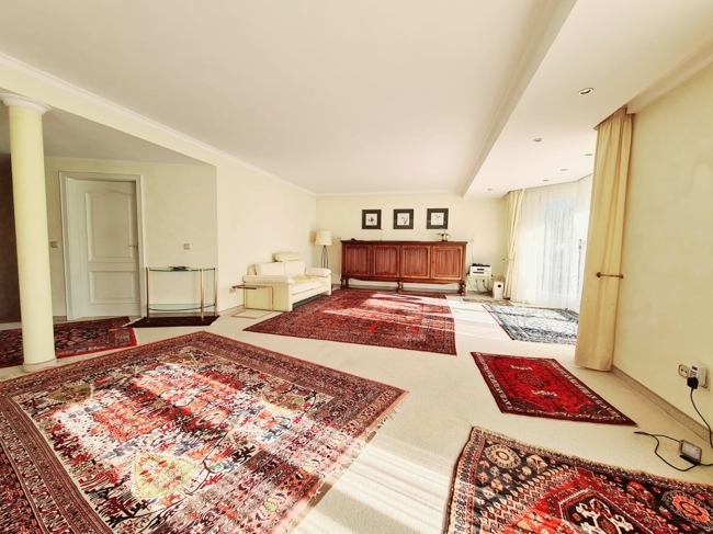Das Dachgeschoss wird als Dachspeicher genutzt. Das Haus ist voll unterkellert mit diversen Nutzungsmöglichkeiten. Das Kellergeschoss mit direktem Gartenzugang verfügt über einen Fitnessraum mit Sauna und Dampfbad, einen Hobbyraum, einen Vorratsraum, zwei Abstellräume, einen Weinkeller, eine Waschküche, ein Gäste-WC, zwei Flure sowie einen Heizungsraum.
