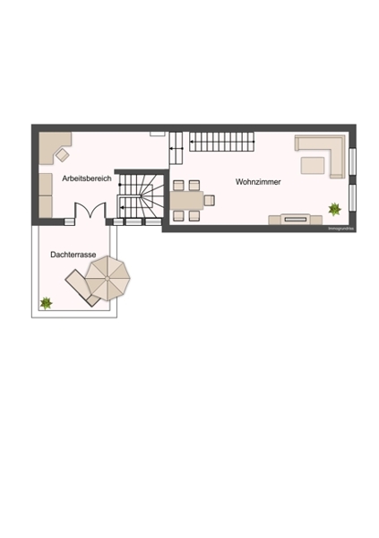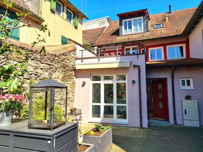 Auf der vom Arbeitszimmer aus begehbaren Dachterrasse mit Blick in den Innenhof können Sie bei einem Glas Wein den Tag entspannt ausklingen lassen.
