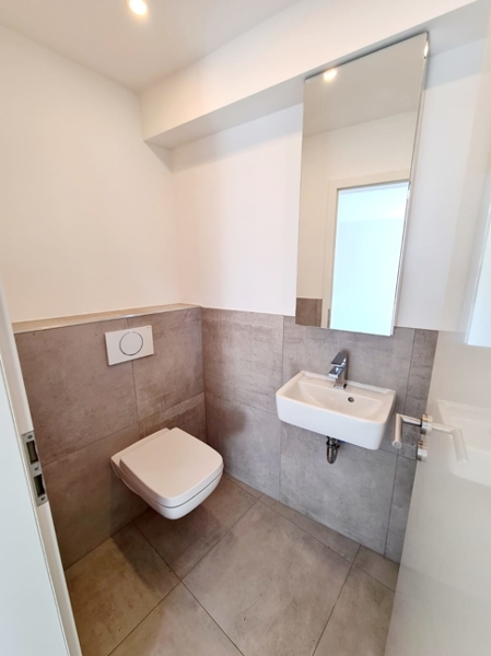 Auf ca. 115 m² Wohnfläche finden Sie hier ein absolut freundliches Wohnambiente. Im Erdgeschoss erwartet Sie ein lichtdurchfluteter Essbereich mit Zugang zur Terrasse. Der offene Küchenbereich, ausgestattet mit einer moderner Einbauküche mit hochwertigen Elektrogeräten lädt zum Kochen ein. Die bodentiefen Fenster vermitteln ein Gefühl von Luftigkeit und Helligkeit. Ein Gäste-WC sowie ein Technikraum mit Anschluss für Ihre Waschmaschine runden das Angebot auf dieser Ebene ab.