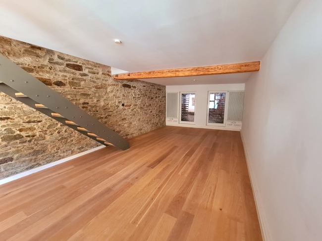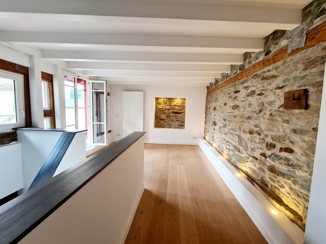 Das Zusammenwirken von historischen Baumaterialien und der einzigartigen und gleichzeitig funktionsgerechten Architektur verleiht dem Objekt Individualität und Charme. Der Eigentümer hat bei der Innenausstattung durch Verwendung hochwertiger Materialien die Grundrisskonzeption besonders betont.
