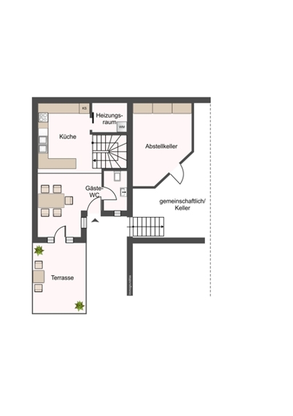Im Spitzboden gibt es einen großen Einbauschrank sowie weitere Abstellfläche. Zum Haus gehört ein großes Kellerabteil im angrenzenden Gemeinschaftskeller.