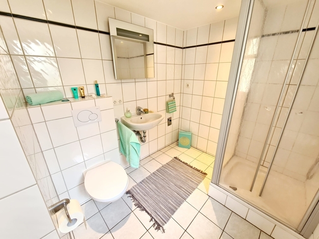- modernes Tageslichtbad mit Dusche, Toilette,