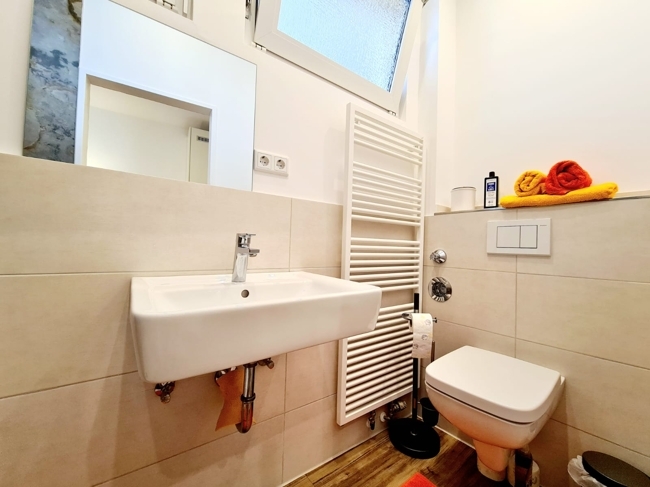 - Modernes Tageslichtbad mit Dusche, Waschbecken u. Toilette