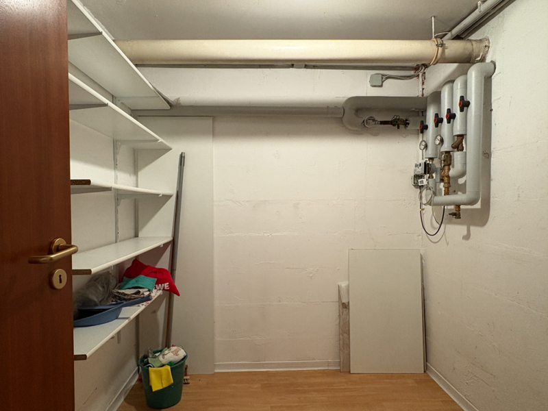 - ein kleinerer, praktischer Nutzraum, aktuell mit Regalböden ausgestattet