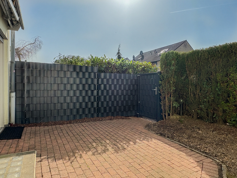 Auf der an das Wohnzimmer angrenzenden Terrasse lässt sich der Feierabend wunderbar genießen. Pflegeleicht angelegt, bietet dieser Bereich die ideale Grundlage, um sich eine ganz persönliche, kleine Wohlfühl-Oase zu gestalten.