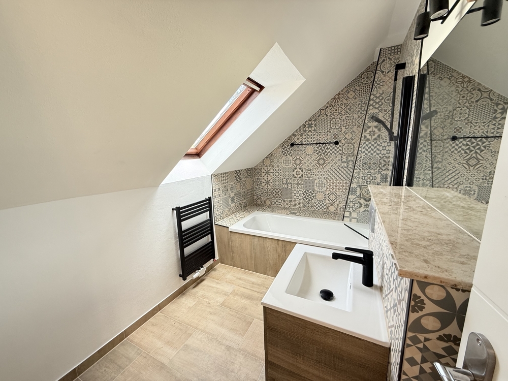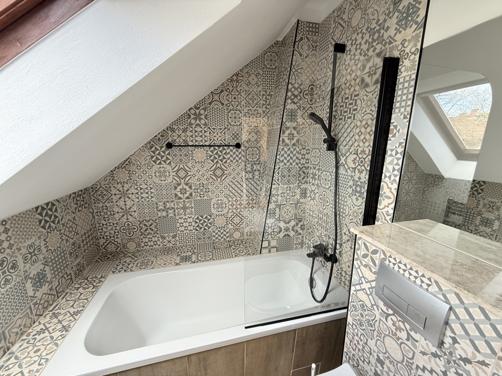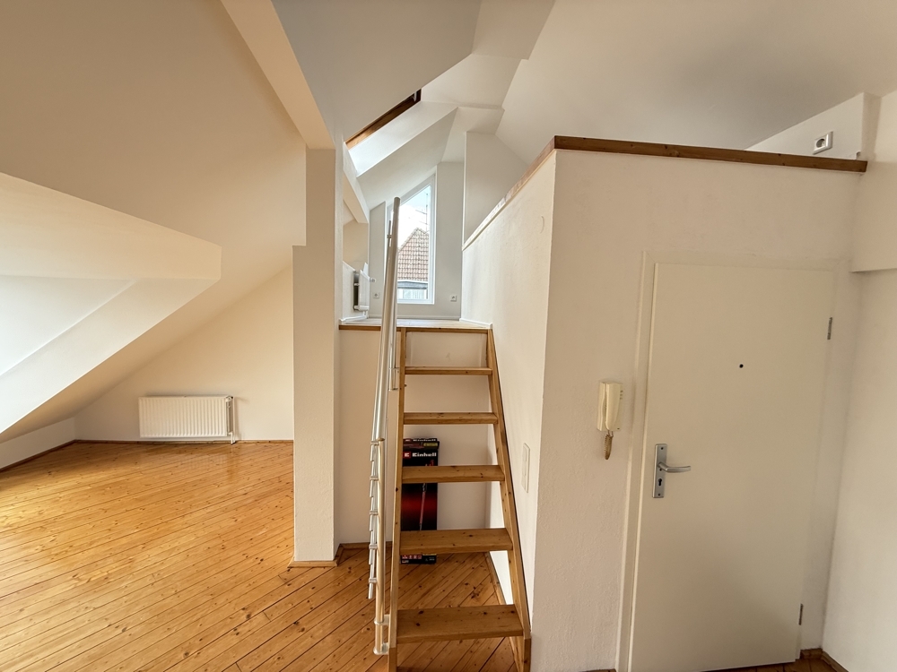 Über eine separate Treppe gelangen Sie vom Wohnraum zu einem kleinen erhöhten Studio, dass Ihnen als Officeplace und Schlafplatz dienen kann. Das neu sanierte Badezimmer mit Badewanne, Fenster und exklusiven Fliesen lässt keine Wünsche offen. Hier befindet sich auch die neue Brennwerttherme.