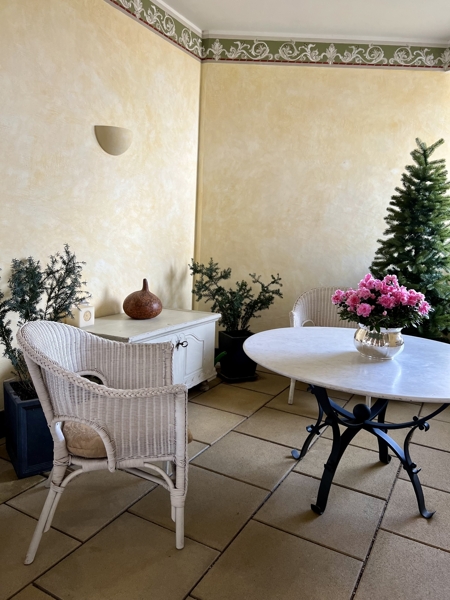 Die idyllische Loggia lädt an heißen Sommertagen ein, die Freizeit in Ruhe und Gelassenheit, fernab vom Städtischen Stress zu verbringen.