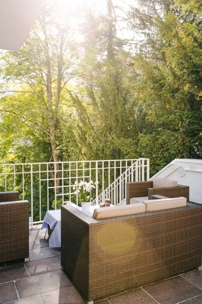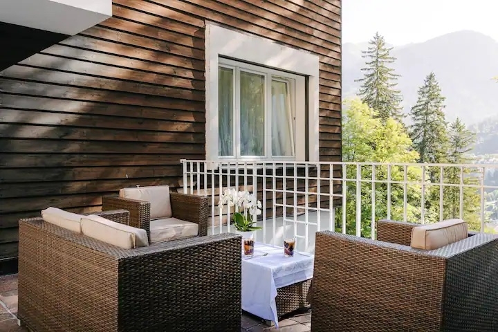 Der Zugang zur Terrasse ermöglicht es, die frische Luft und die Aussicht in vollen Zügen zu genießen.